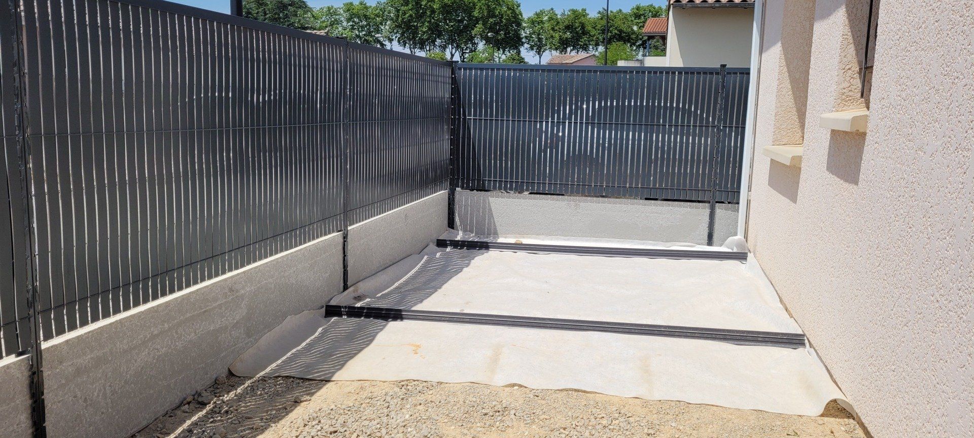 Pose d’une clôture occultante persiennée sur 30 mètres et grillage rigide sur 20 mètres et portail à venir …